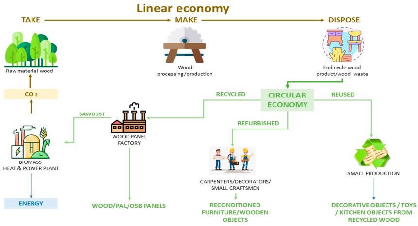 1. Promote circular economy practices through waste wood recycling and upcycling.
